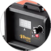 - Встроенная функция «Hot Start» резко подаёт повышенное напряжение на электрод при запуске. Дуга поджигается легче и быстрее.